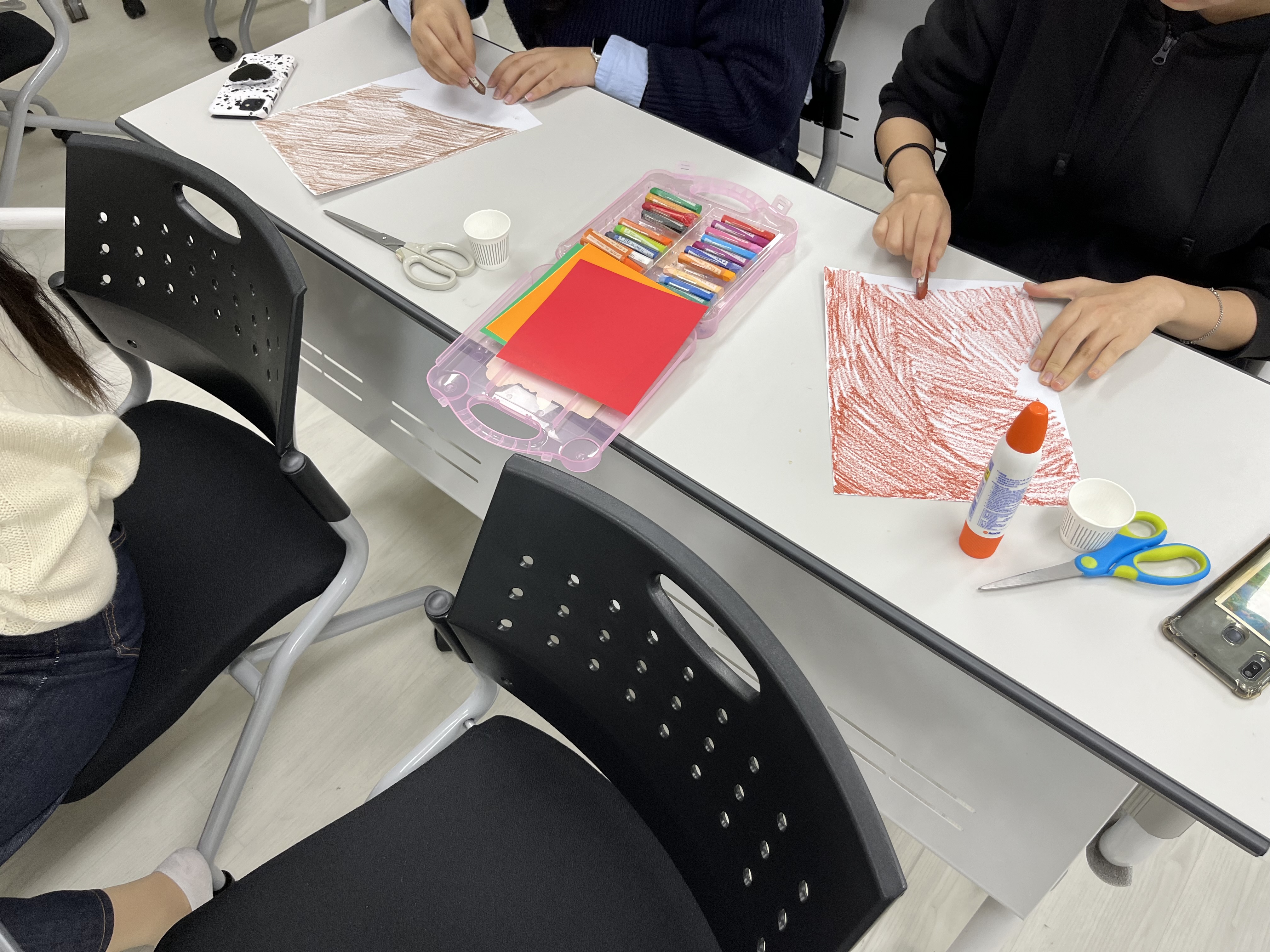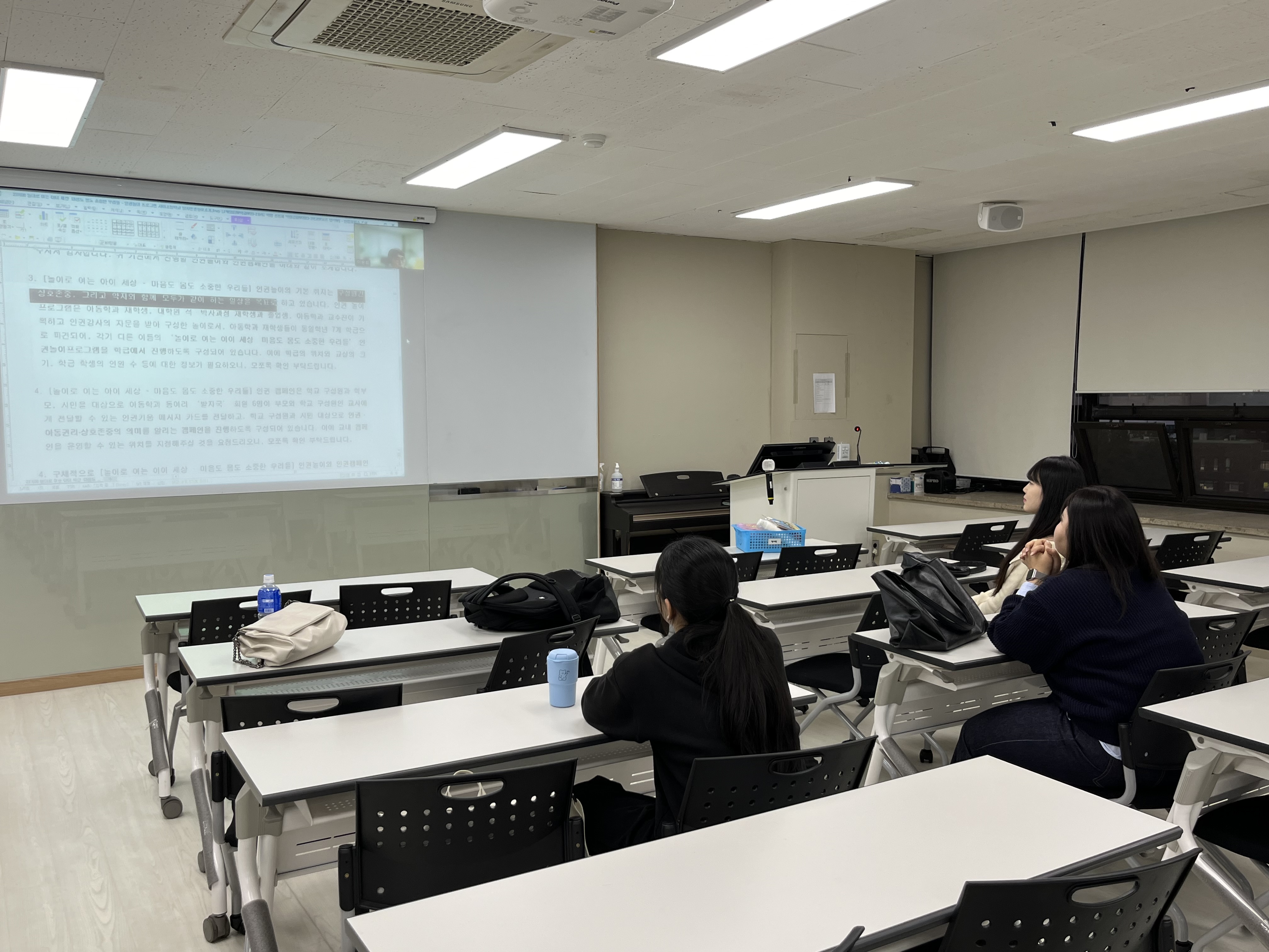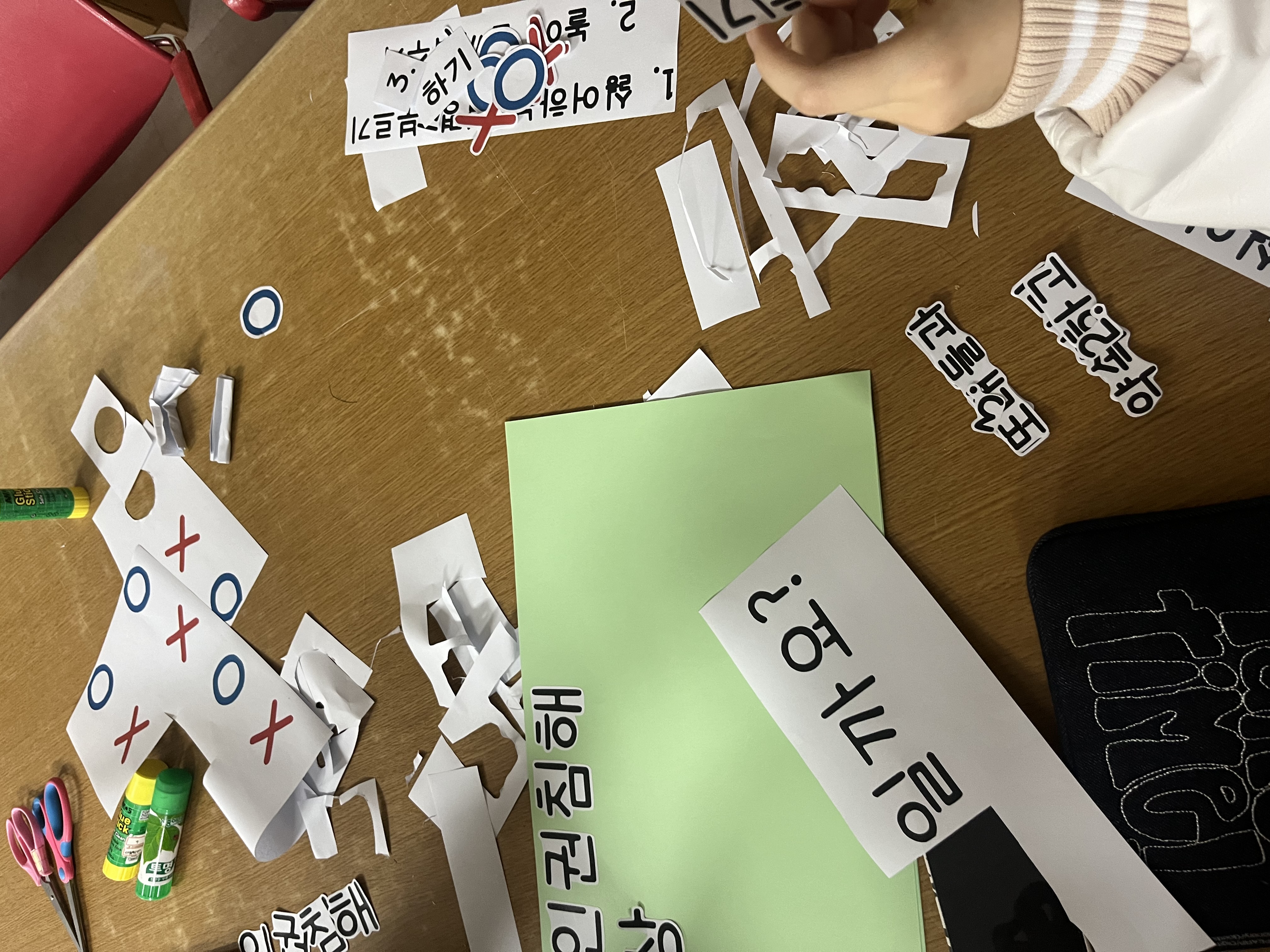 아동권리와복지 시간에 직접 참여하여 놀이계획진행상황을 파악하고 부원들끼리 따로 모여 리플렛, 메시지 카드, 캠페인을 위한 오엑스판 만들기를 진행 중입니다.