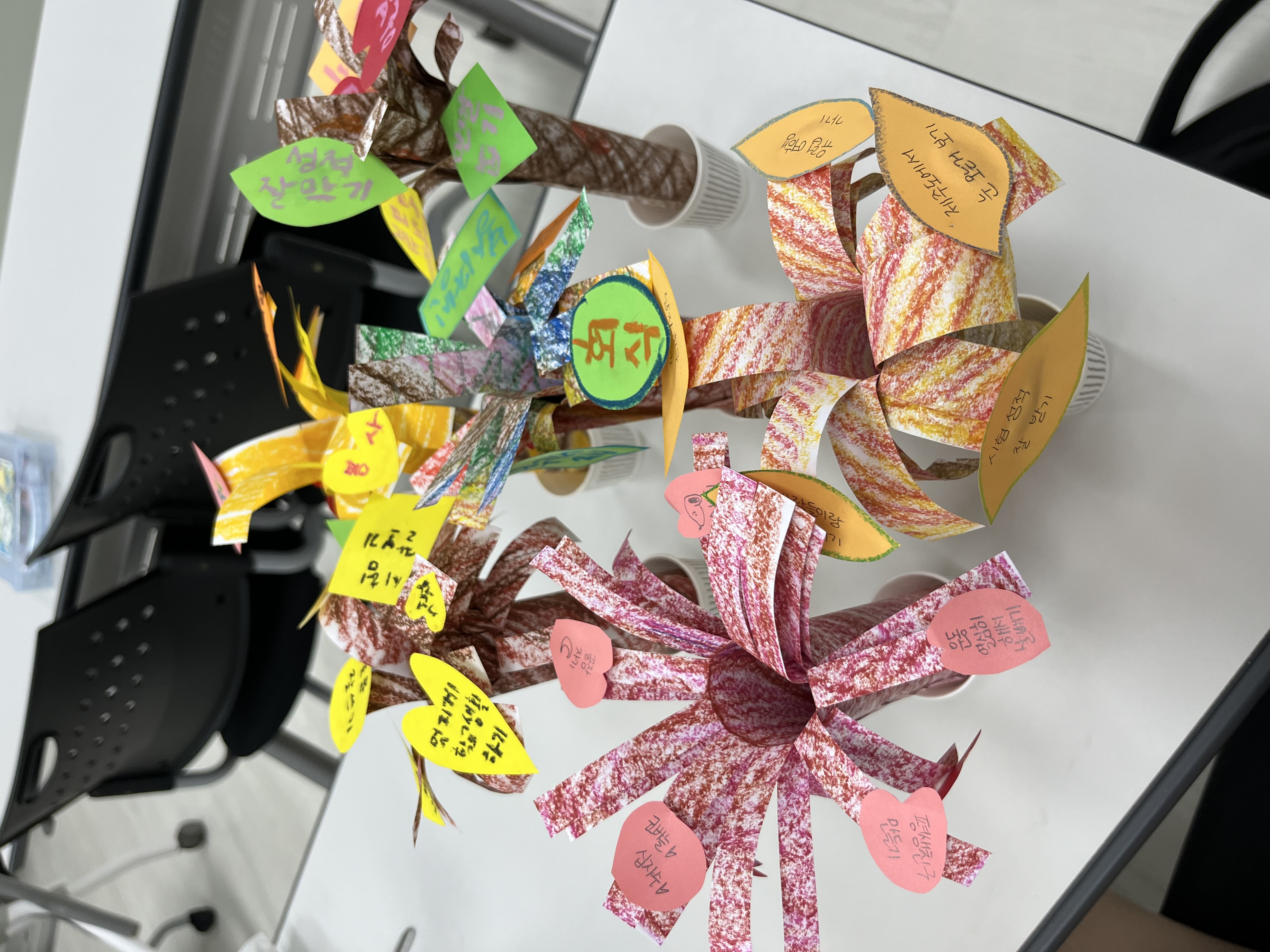 나만의 나무를 만든 후에 각자 원하는 소원, 자신의 장점, 버킷리스트 등 자유롭게 적어보았습니다.