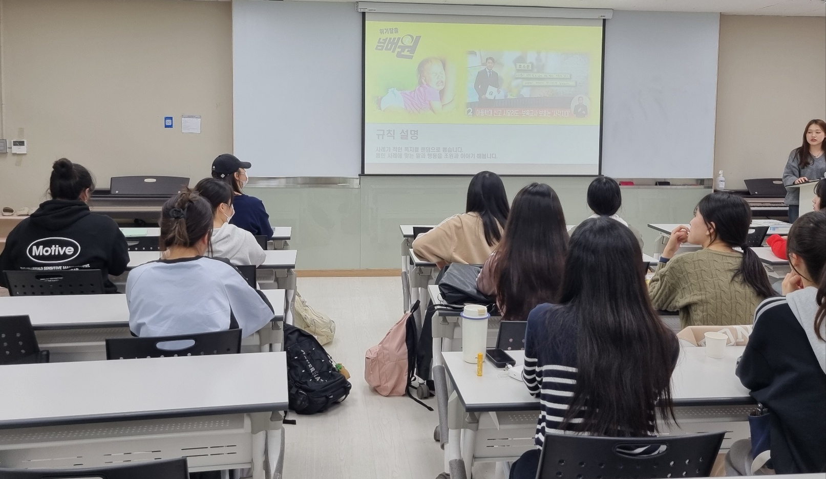 4월10 일 상반기 누리 다섯 번째 활동으로는 사례 탈출 넘버원이라는 제목 아래 중간고사 이후 있을 동아리 현장 실습 활동과 훗날 보육교사로서 현장에 나가게 되었을 때 자주 마주할 수 있는 여러 사례들에 관해 고민해 보고 모둠별로 각 사례의 대처법을 마련해보는 활동을 진행하였습니다 아래는 활동 흐름에 따른 과정과 관련 사진입니다.