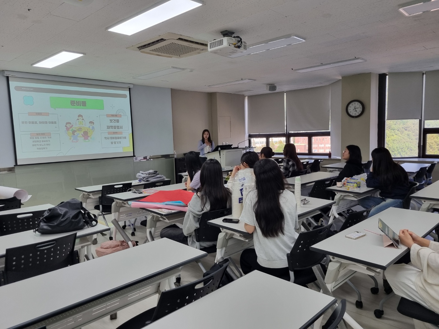 약 1시간 정도 모둠별 활동 시간을 가진 후, 실습을 진행할 반의 이름표와 실습 과정에서 착용해야할 앞치마를 제공하고 실습 기관에 제출해야할 서류를 제출, 다음주 있을 종강총회를 안내하며 활동을 마무리하였습니다.